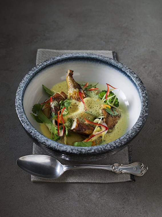 PÄRLHÖNA I GRÖN CURRY by Danyel Couet